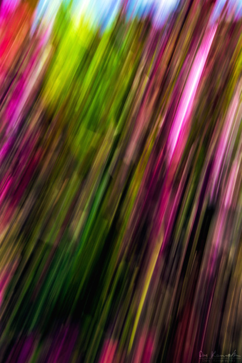 I set the camera to it’s lowest ISO and it’s smallest aperture to generate a slower shutter speed, even in direct sunlight. I then proceeded to swing the camera in an upward motion during the exposure. It’s important to begin the motion before pressing the shutter button if you’re after a smooth continuous effect.