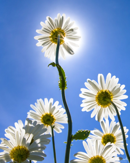 I know this has been done before, but it’s always been on my list of images to make – a photograph of daisies looking up at the sun.